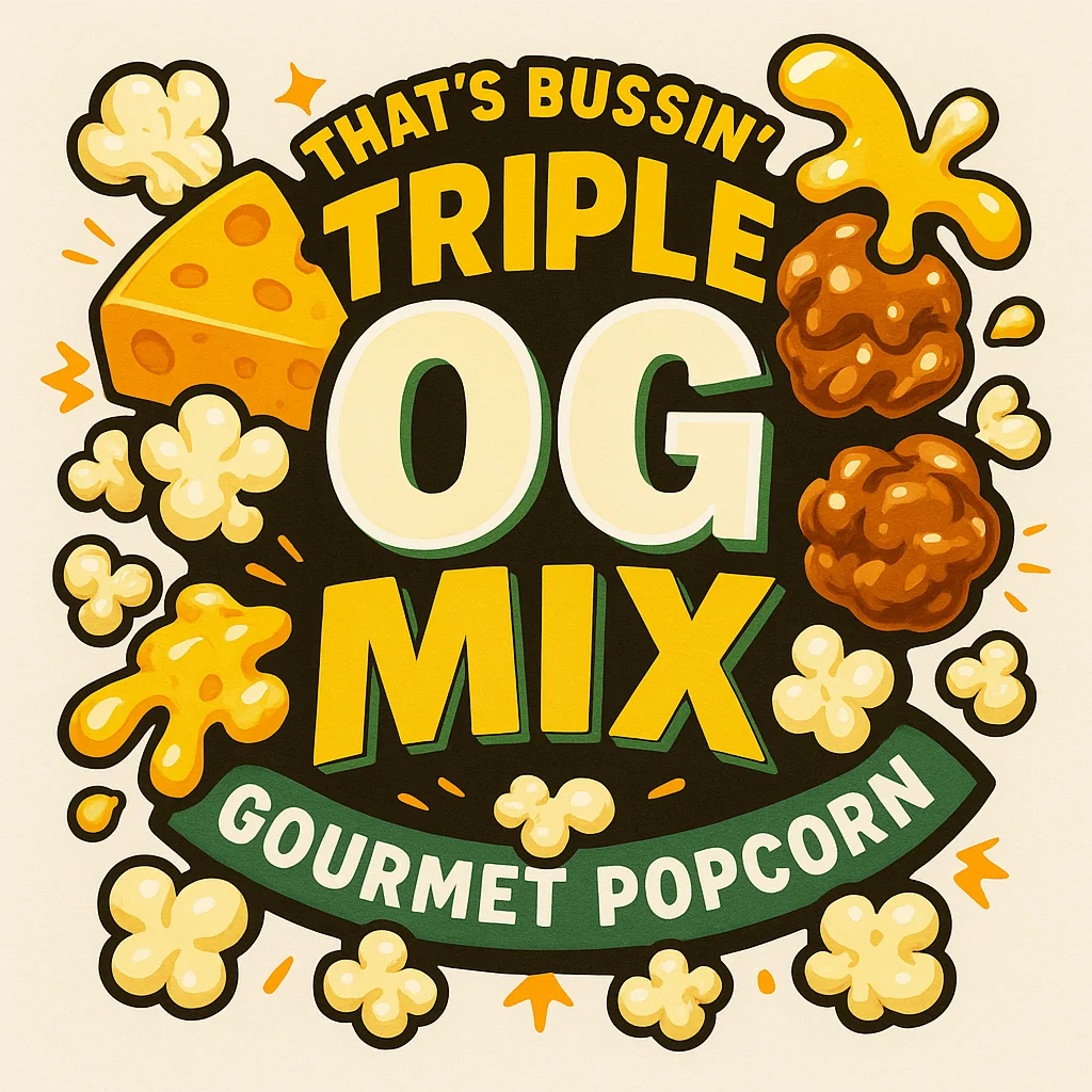 Meet Triple OG Mix, the one that raised us, loved us, and stayed solid since day one. This is that back-in-the-day popcorn tin magic—glowin’ with caramel sweetness, throwin’ cheddar swagger, and flexin’ that smooth buttery shine. Every handful snaps you right back to childhood floors covered in wrapping paper, TV glowing, and that shiny tin you weren’t supposed to open yet… but absolutely did.